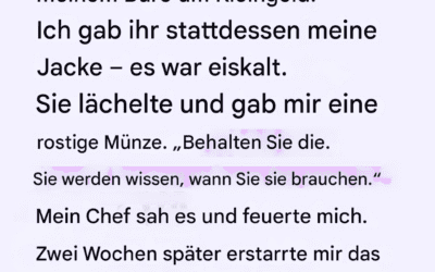 Ich gab einer frierenden Frau meine Jacke, und zwei Wochen später stellte eine Samtbox meine Welt auf den Kopf.